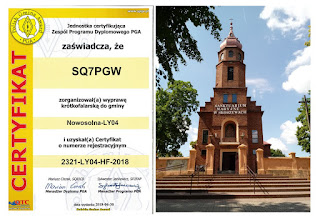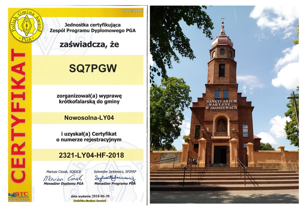 Licencja Krótkofalowca zobowiązuje. Użytkowanie transcieivera w paśmie 11 metrów jest nie pomijane. Pojawiają się nowe akcje radiowe takie jak aktywacja polskich gmin. W województwie łódzkim w końcu czerwca 2018 roku w gminie Nowosolna oznaczonej jako LY 04 trwała jej aktywacja. Moja antena radiowa umiejscowiona była we wsi Stare Skoszewy. Pod własnym znakiem Radionadawcy prowadziłem łączności. Zespół Programu Dyplomowego PGA sprawdził mój log zawierający ponad 100 zapisanych łączności i przyznał mi Certyfikat.