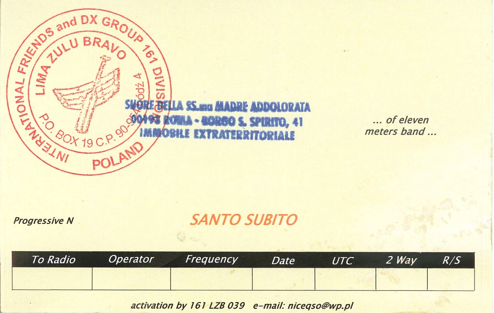 (200 sztuk) kart QSL dedykowanych do tej specjalnej stacji znajdował się w Rzymie